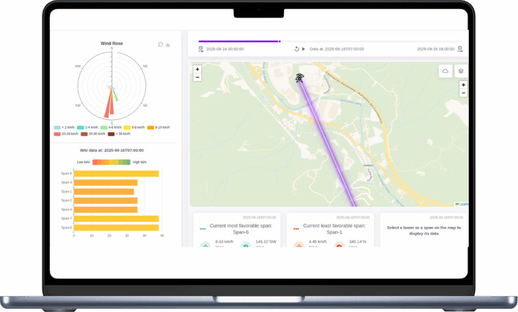 Generates local alarms and spatial prediction (Weather Ampacity Index) to optimize export.
